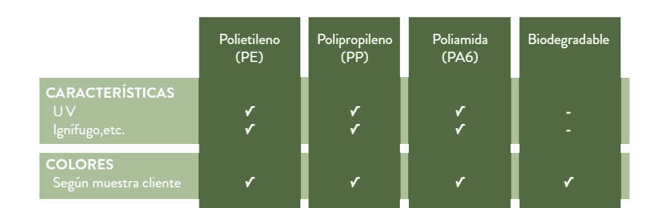 Polímero ideal para la intemperie gracias a su buen comportamiento ante los diferentes agentes meteorológicos, estando especialmente indicado para el sector agrícola. Aplicaciones: mallas de invernadero, menaje, etc…